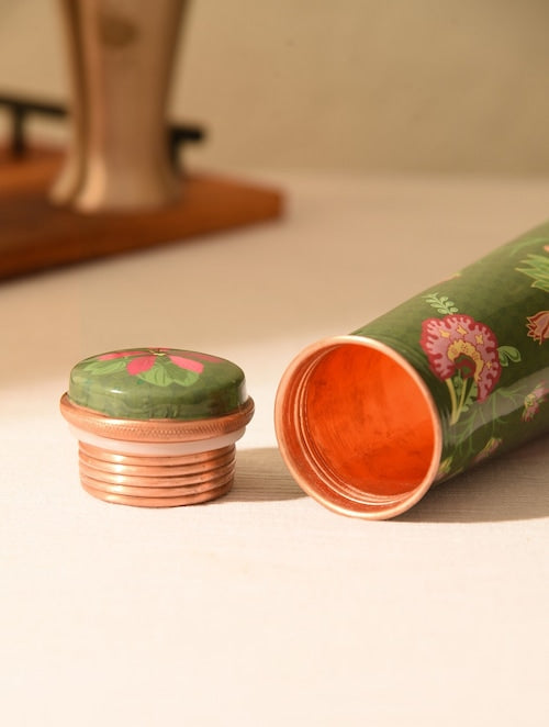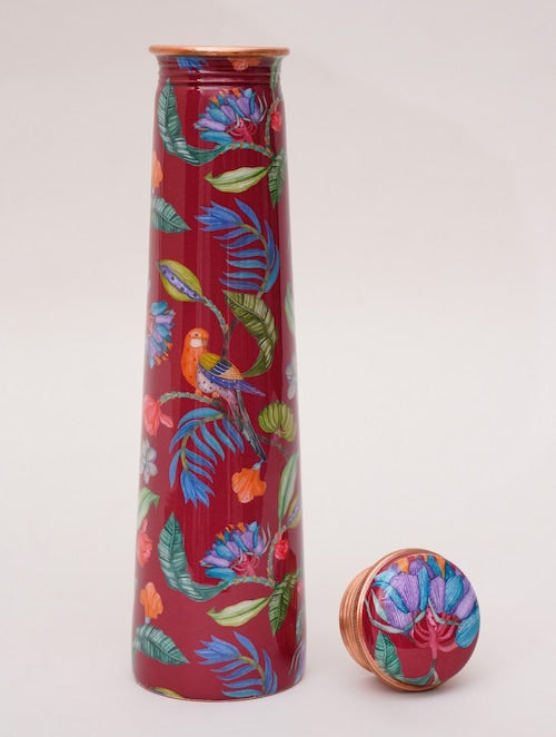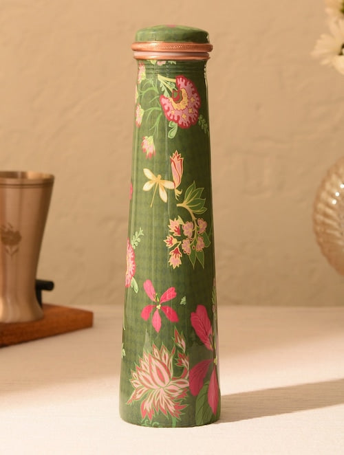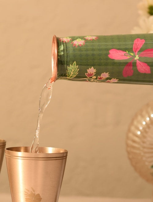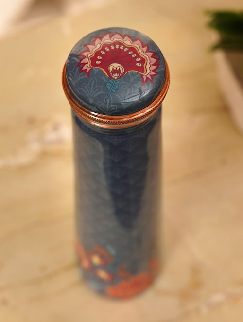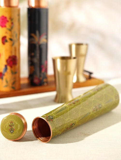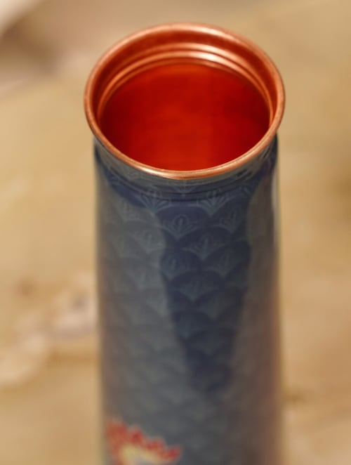 Add a touch of art and wellness to your daily hydration with these exquisite handcrafted copper bottles, each featuring a distinct design inspired by nature and traditional Indian artistry.