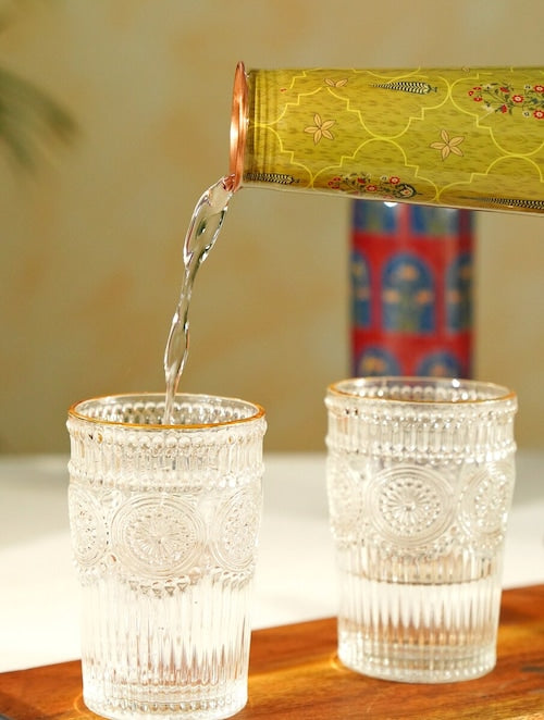 Made from pure copper, these bottles combine age-old Ayurvedic wisdom with contemporary aesthetics — keeping your water naturally pure while enhancing your home or workspace décor.