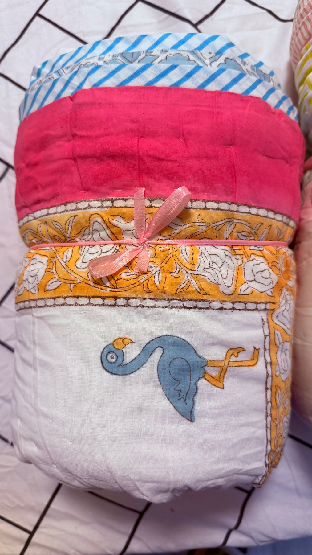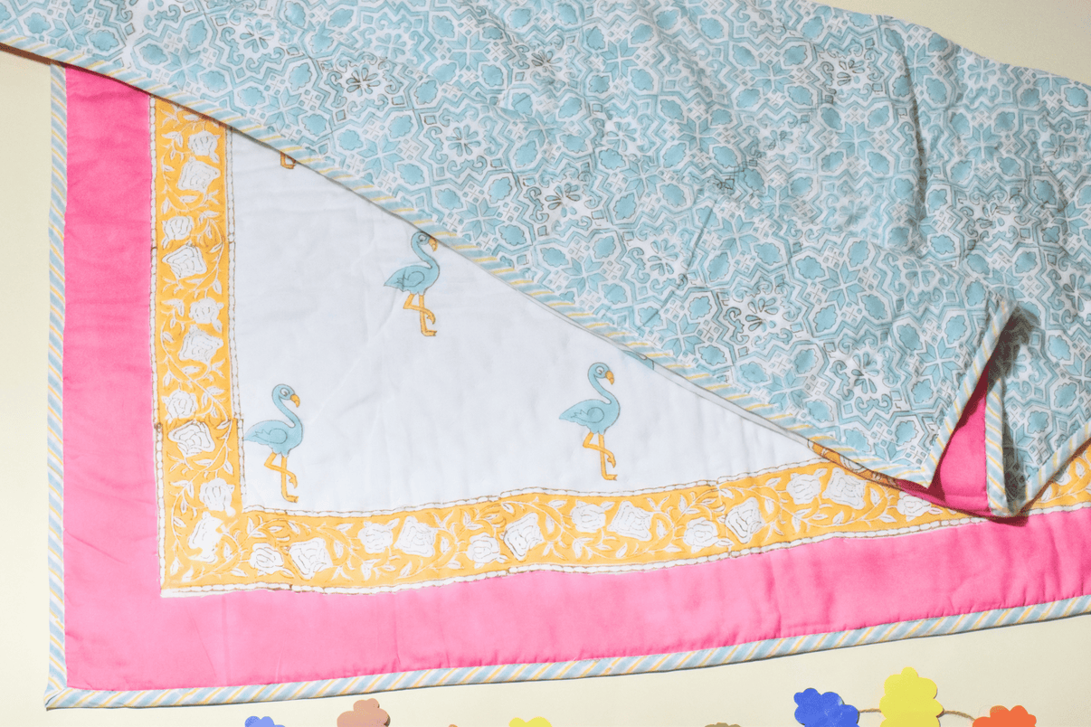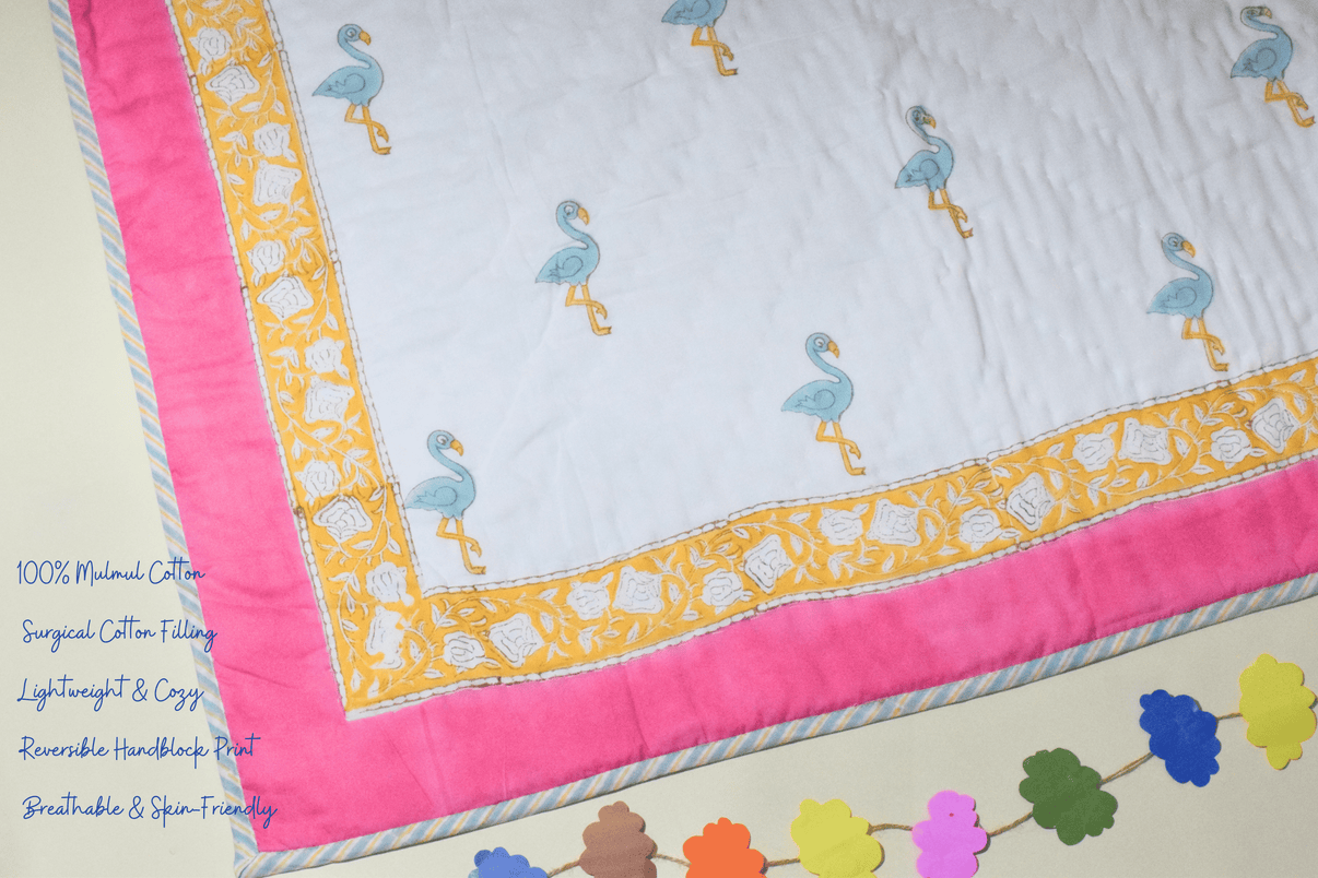 Wrap your little one in comfort with our hand-crafted pure mulmul quilts, thoughtfully designed for children aged 0 to 7 years. Made from the softest, breathable mulmul (fine muslin cotton), these quilts are lightweight, gentle on delicate skin, and perfect for all seasons.